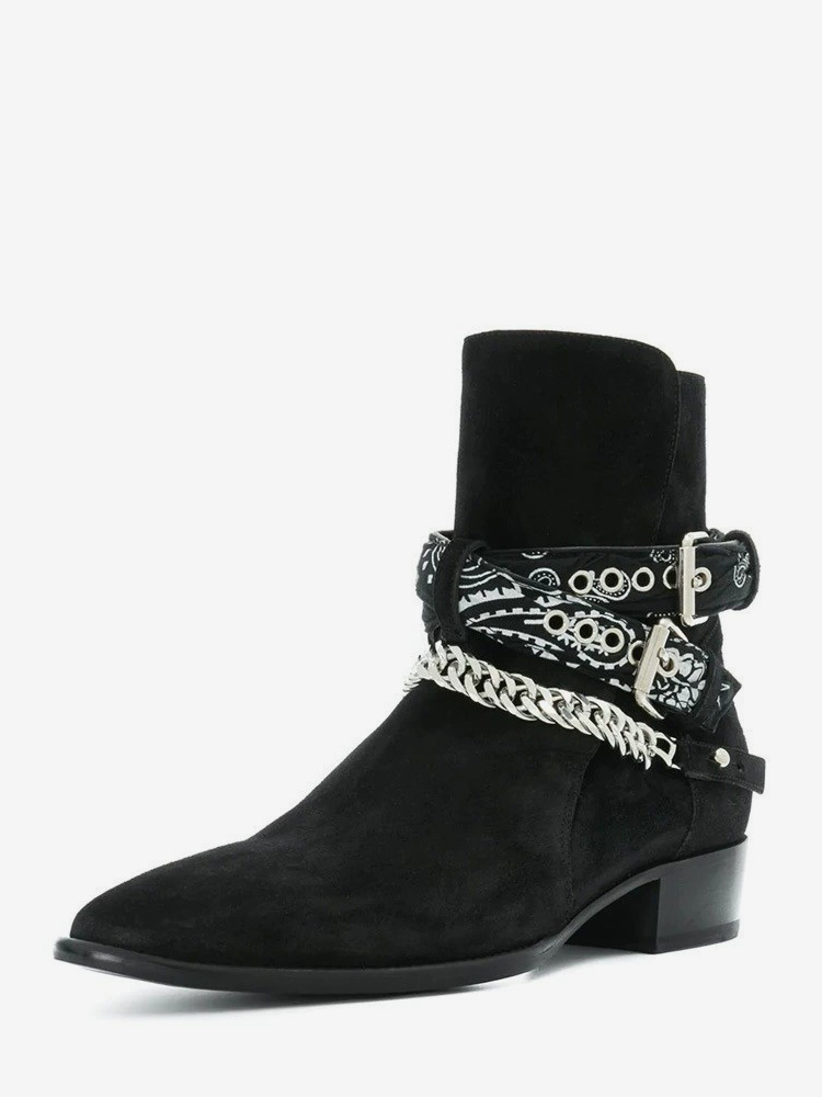 スエードアンクルブーツ メンズ ラウンドトゥ チェーンディテール チャンキーヒールブーツ