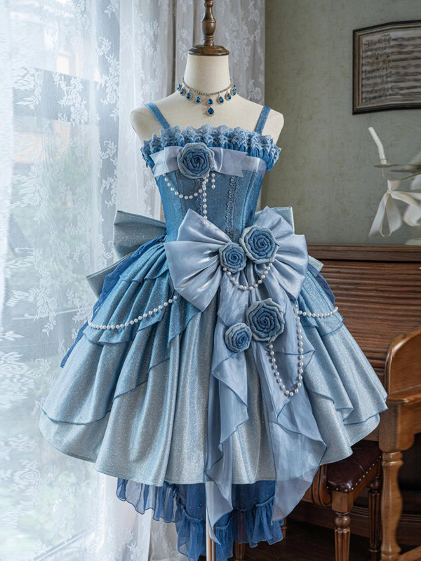 スウィートロリータドレス リボン パールチェーン サイドリボン JSK ロリータドレス
