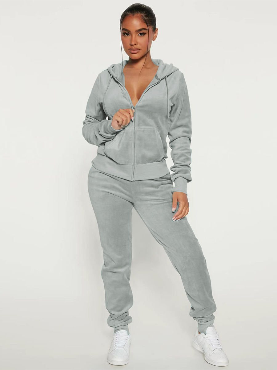 ベロア ジップアップ スリムフィット パーカー ジョガーセット レディース 2025