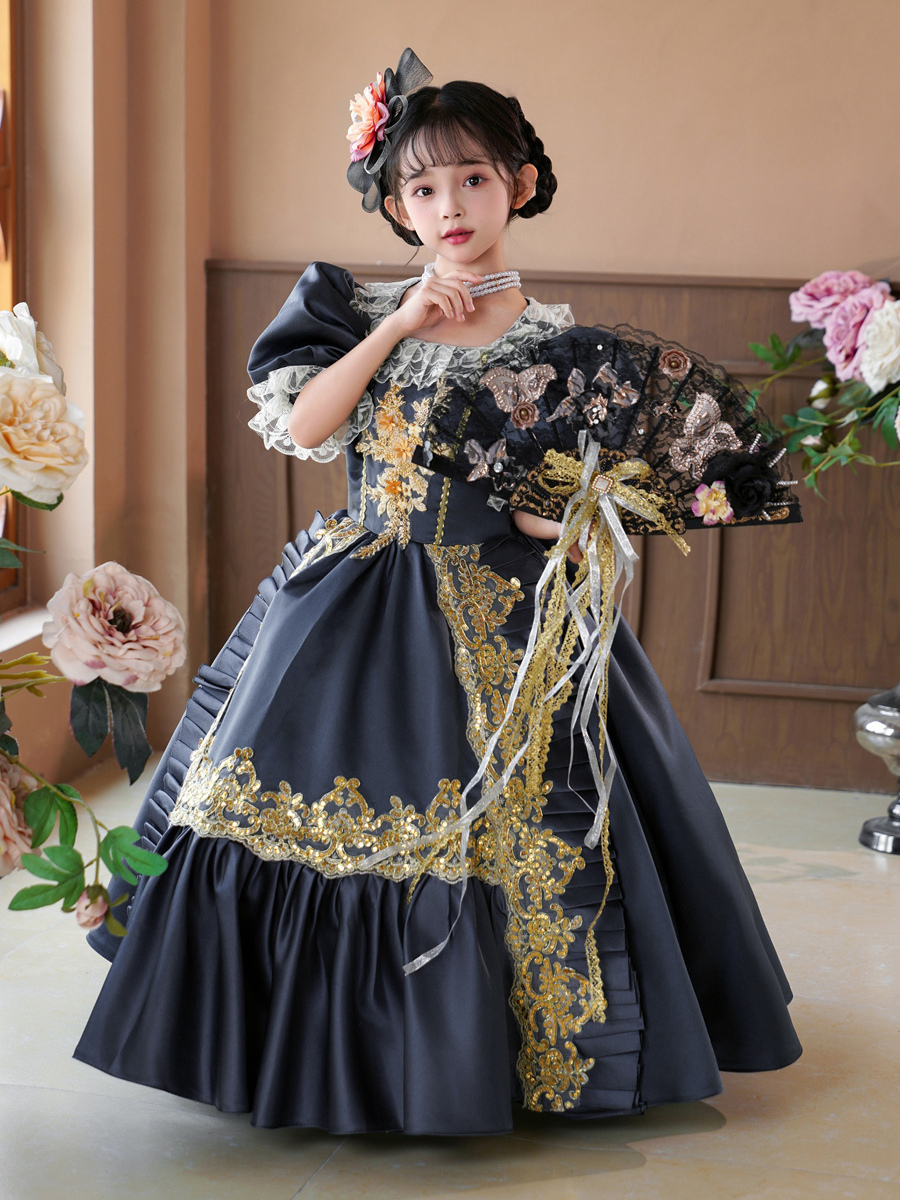 ビクトリア朝のロココ調の衣装 グレーのレトロなフリルドレス コスチューム パーティー プロムドレス