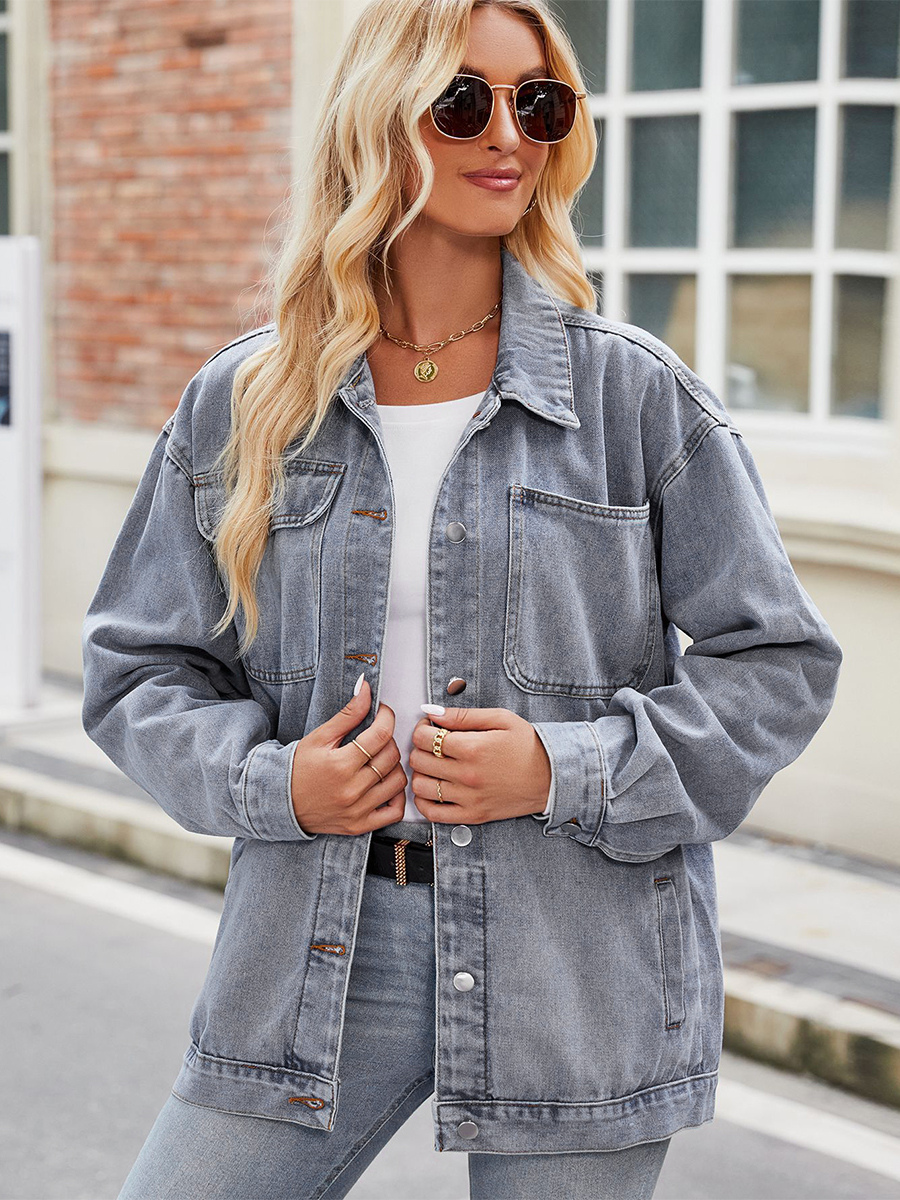 ヴィンテージ風オーバーサイズデニムジャケット(レディース) - ゆったりとしたフィット感のラペルボタンダウンデニムトラッカーコート - 2026年春のカジュアルストリートウェア
