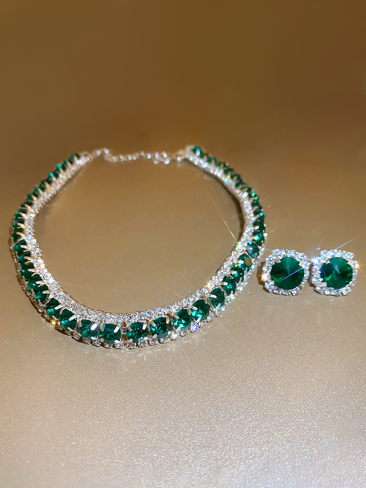 ヴィンテージレディースジュエリーセット ラインストーンネックレス イヤリング レトリオセット
