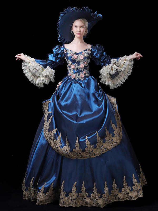 ヴィンテージ レディース ヴィクトリアン ロココ ドレス レーストリム フレアスリーブ 花柄プリント ボールガウン ドレス