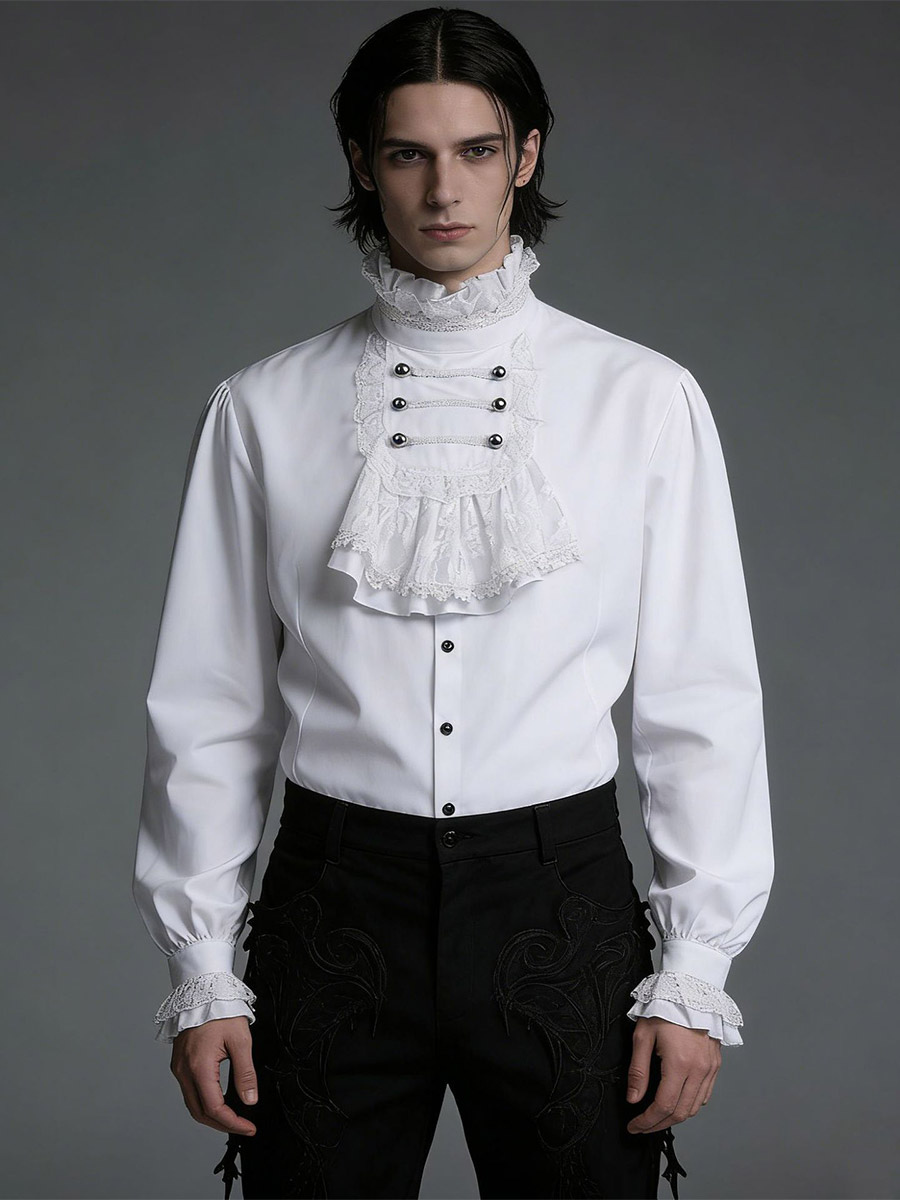 ホワイト レトロ ヴィクトリアン スチームパンク ハイカラー ダブルブレスト ヴィンテージ シャツ ブラウス