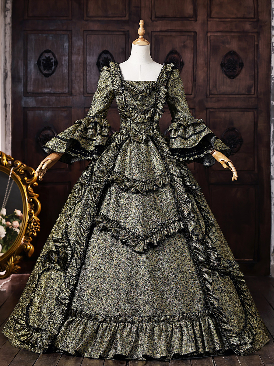 レディース ヴィクトリアン ロココ ドレス フレア袖 フリル トリム バック バンテージ ヒストリカルドレス