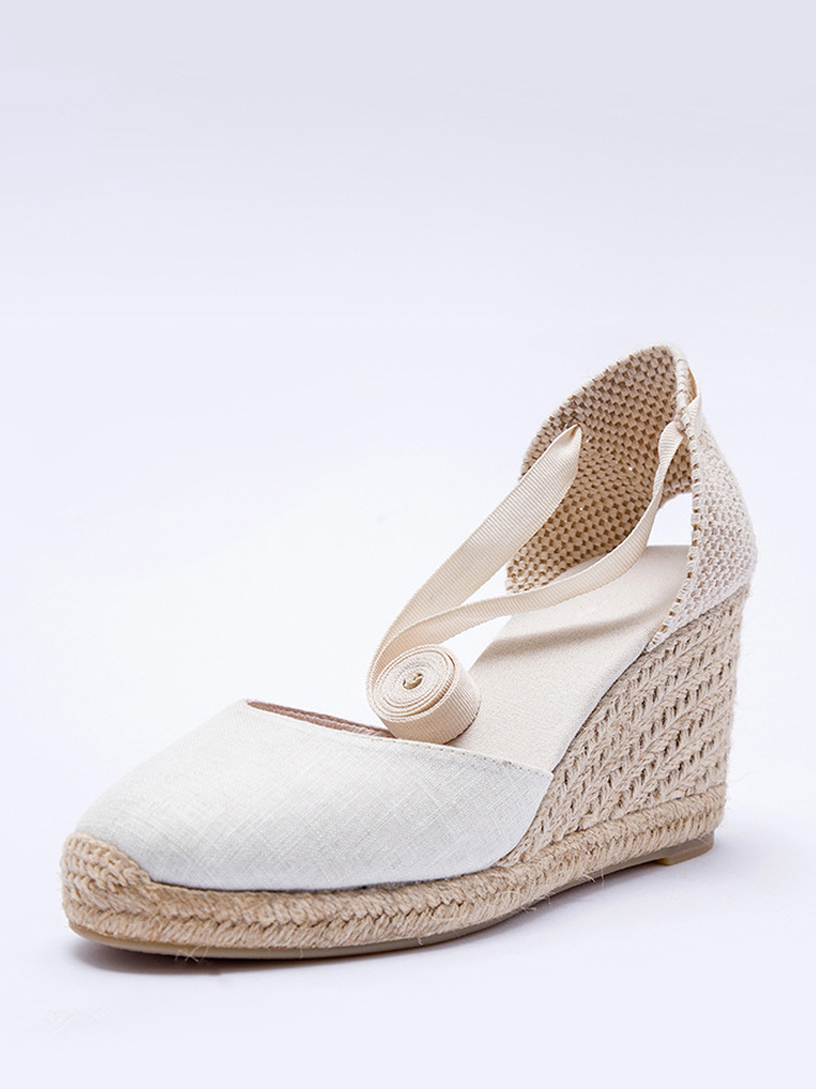 ホワイト ウェディング シューズ スエード ブライダル ポインテッドトゥ レースアップ ウェッジ エスパドリーユ