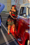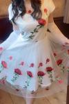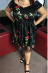 レビュー: ブラックヴィンテージドレス 2026 1950sオフショルダー フラワー刺繍レッド チュールホームカミングドレス