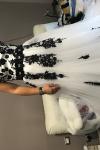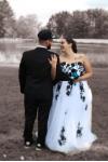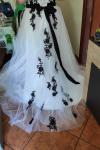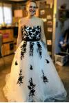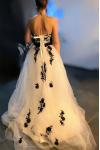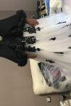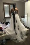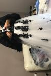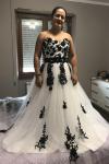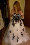 レビュー: ウェディングドレス 2025 ストラップレスブラックブライダルドレス レースアップリケ フラワーサッシュ ビーズコートトレーン アイボリーチュールブライダルドレス Milanoo限定