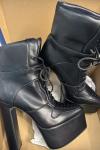 ブラック アンクルブーツ レディース プラットフォーム レースアップ チャンキーヒール ブーティ