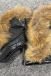 レビュー: ブラック アンクルブーツ レディース ポインテッドトゥ ファー レースアップ ハイヒール ブーティ