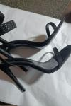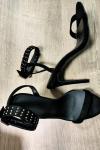 レビュー: ブラック アンクル ストラップ ハイヒール オープントゥ スティレット プロム ヒール サンダル 女性用