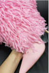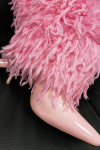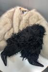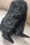 レビュー: ブラックフェイクフェザーニーハイブーツレディースポインテッドトゥハイヒールブーツ