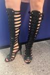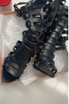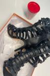 レビュー: ブラックグラディエーターサンダル ハイヒール オープントゥ バックルディテール サンダルシューズ