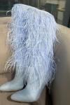 レビュー: ブラックニーハイブーツ レディース フェザーディテール スティレットヒール ニーレングスブーツ