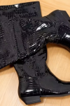 レビュー: ブラックニーハイブーツ レディース ストーン柄 スクエアトゥ フラットブーツ