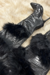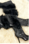 ブラック オーバーザニーブーツ フェイクファーディテール ハイヒール セクシーなオーバーザニーブーツ