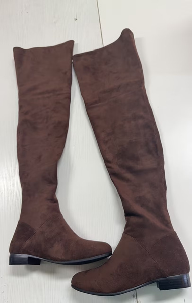 レビュー: ブラック オーバー ザ ニー ブーツ レディース ポインテッドトゥ フラット サイハイ ブーツ