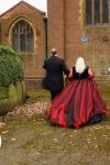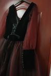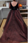 レビュー: 黒赤ゴシックウェディングドレスチュール A ライン長袖トレーンブライダルガウン無料カスタマイズ