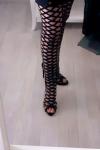 レビュー: オーバーニーハイヒール レディース オープントゥ カットアウト サイハイブーツ ブラックセクシーシューズ