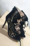 レビュー: スエードグラディエーターサンダル女性ピープトウシューズハイヒールサンダルをレースカット