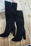 レビュー: ブラック スエード ニーハイ ブーツ チャンキー ヒール ブーツ