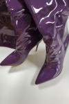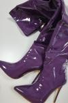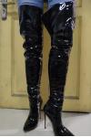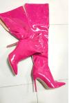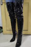 レビュー: オーバーニーブーツ ポインテッドトゥ スティレットヒール パテントブライト レディース レザー ブラック