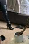 本当にこれらのブーツが好きです。太ももの開いた部分をひもで締めて、この部分がフレアアウトしないようにする必要がありました。本当に高く、大きな子牛には大丈夫です。