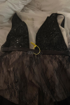 This comes with built in shorts which I wasn’t expecting, also mesh on the sides and front which wasn’t clearly depicted in the photos. It’s a gorgeous gown though, comfortable and flattering.