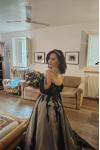 レビュー: 黒のウェディングドレス Aライン ノースリーブ レース チュール トレーン付き ブライダルガウン