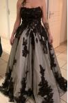 Magnifique! Faite sur mesure mais je trouve que la queue de la robe est un peu trop longue conseil d’acheter une crinoline pour donner la forme et de faire coudre une bande de tissu pour pouvoir porter ma queue au poignet