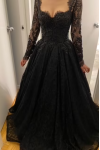 レビュー: 黒のウェディングドレスレース A ライン長袖ブライダルドレストレーン無料カスタマイズ