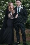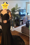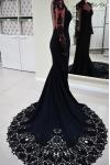 レビュー: 黒のウェディングドレス マーメイド 長袖 レース サテン生地 コートトレイン ブライダルドレス