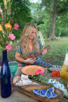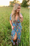 レビュー: ボヘミアンワンピース ライトスカイブルー マキシワンピース 半袖 ポリエステル 花柄 スプリット 編み上げ レディースファッション Vネック レディースワンピース
