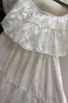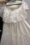 レビュー: ボヘミアン風マキシドレス オフショルダー ホワイトフラワー Aライン レイヤードヘム ロングドレス レディース
