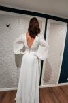 レビュー: ボヘミアンウェディングドレス シフォン レース Aライン スイープ ナチュラルウエスト ジッパー 長袖 Vネック アイボリー