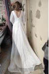 レビュー: ボヘミアン ウェディングドレス シフォン プリーツ Aライン トレーン付き ナチュラルウエスト レースアップ ロングスリーブ Vネック アイボリー