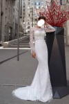 ボヘミアンウェディングドレス レース カットアウト マーメイド トレーン付き ナチュラルウエスト バックレス ロングスリーブ ジュエルネック アイボリー