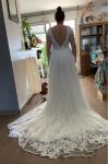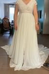 レビュー: ボヘミアンウェディングドレス サテン生地 レース Aライン スイープウエスト バックレス 半袖 Vネック アイボリー