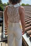 レビュー: ブライダルジャンプスーツ レース フロアレングス ジャンプスーツ Vネック ノースリーブ ナチュラルウエスト アイボリー