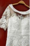 レビュー: ブライダルマザードレスジュエルネックハーフスリーブレースティーレングスシースゲストドレス結婚式用無料カスタマイズ