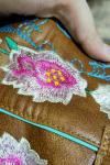 ブラウン カウボーイブーツ ラウンドトゥ パピーヒール ミッドカーフブーツ カウガール ウェディングシューズ