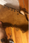 レビュー: ブラウン サンダル ブーティ ハイヒール ピープトウ US 4-US13 レースアップ ヌバック アンクルブーツ レディース