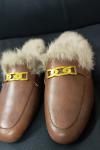 ブラウン レディース ミュール ローファー ラウンドトゥ 冬靴