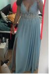 レビュー: イブニングドレス 半袖 Aライン Vネック パーティードレス シフォン ファスナー ベビーブルー ロング丈 フォーマルドレス 演奏会ドレス 結婚式 二次会ドレス 発表会 ウェディング