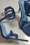 デミンヒールサンダル レディース オープントゥ バタフライディテール ストラップハイヒールサンダル