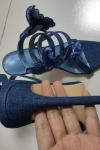 デミンヒールサンダル レディース オープントゥ バタフライディテール ストラップハイヒールサンダル
