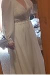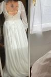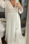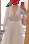 La robe est jolie, malheureusement elle est arrivée avec un accroc ! pas top pour une robe de mariée ... je vais donc la retourner. Je la trouve un peu lourde elle paraissait plus fluide et légère sur la photo. Je mesure 1m61 et sur la photos j'ai des talons. Les détails sont jolis, il faudra sans doute recoudre quelques petits boutons qui me semble pas assez cousus.