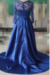レビュー: イブニングドレス Vネック ボールガウンライン ロイヤルブルー パーティードレス サテン ファスナー トレーン付き 七分袖 30cm フォーマルドレス 演奏会ドレス 結婚式 二次会ドレス 発表会 レース ウェディング