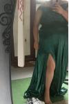 レビュー: イブニングドレス Vネック Aライン ダークグリーン パーティードレス 弾性サテン ファスナー ロング丈 半袖 スプリット フォーマルドレス 演奏会ドレス 結婚式 二次会ドレス 発表会 ウェディング