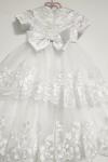フラワーガールドレスホワイトジュエルネックレース半袖ティーレングスAラインレースフォーマルキッズページェントドレス